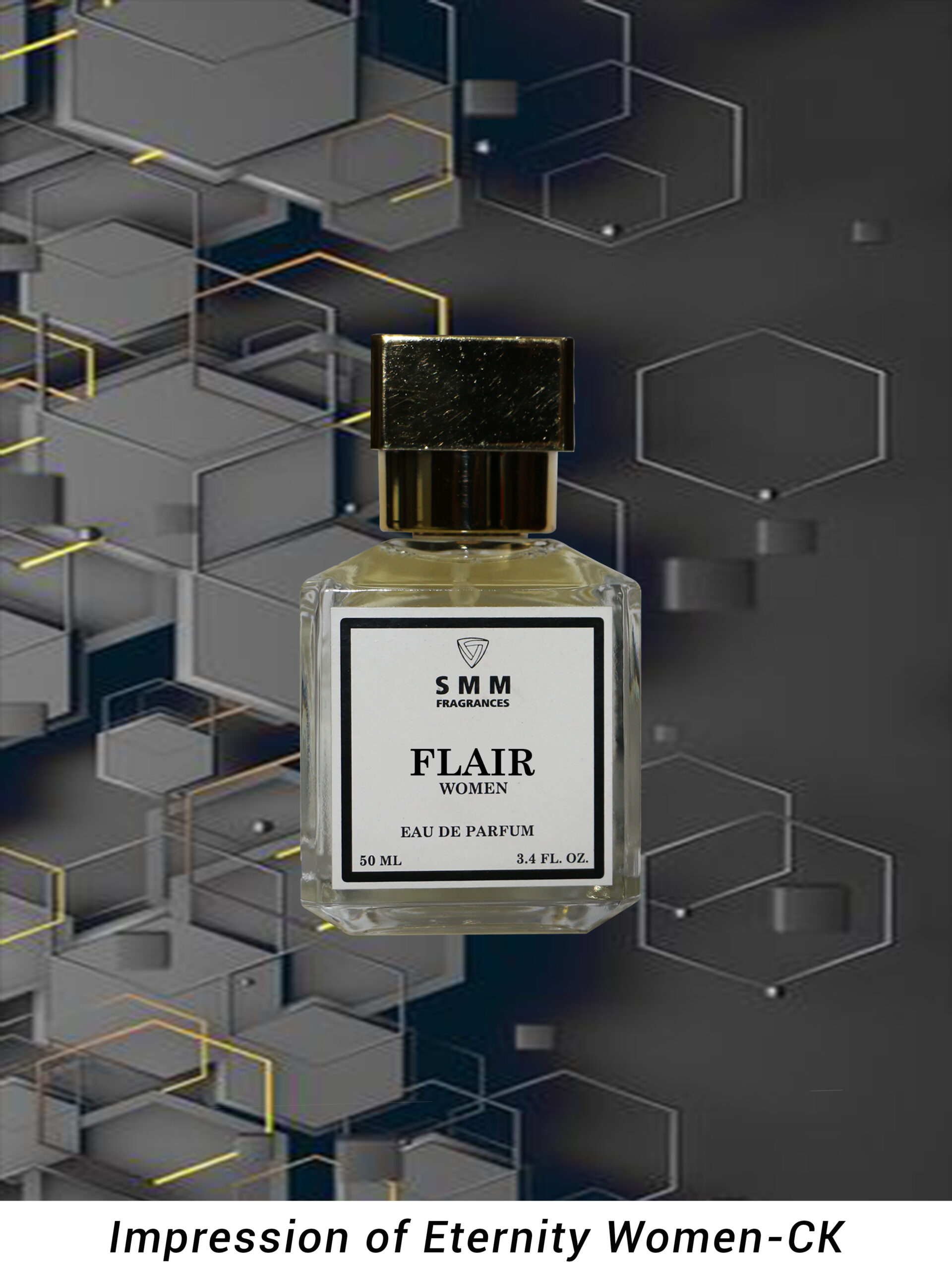Flair-Impression of Eternity for Women-SMM Fragrances is a timeless fragrance that embodies the essence of lasting love, elegance, and femininity. Flair is the perfect fragrance for women who appreciate sophistication and timeless beauty, making it an ideal choice for both everyday wear and special occasions.